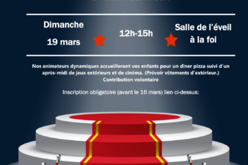 Activité ciné-pizza La paroisse SJ23 invite les enfants de 5-11 ans à venir fraterniser. Dimanche 19 mars 12h-15h Salle de l’éveil à la foi Nos animateurs dynamiques accueilleront vos enfants pour un dîner pizza suivi d’un après-midi de jeux extérieurs et de cinéma. (Prévoir vêtements d’extérieur.) Contribution volontaire Inscription obligatoire Lire la suite…