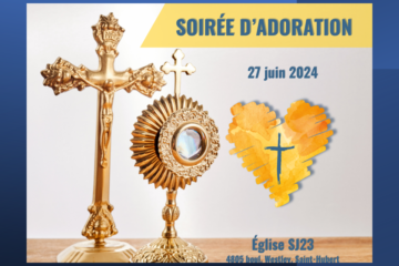 Dimanche prochain, 29 septembre à 10h30, nous aurons une messe familiale! Les enfants prendront part directement à la célébration. Les différentes étapes de la célébration leur seront expliquées pour qu’ils aient une meilleure compréhension de ce qu’il s’y passe. Ne manquez pas se moment où nos jeunes se mettent au Lire la suite…